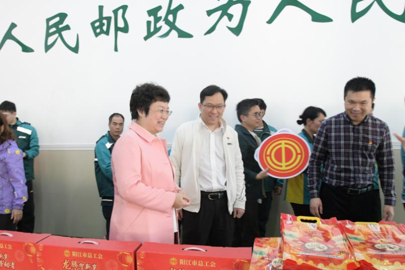 2月2日,陽江市總工會慰問組到陽江分公司郵政寄遞攬投部開展2024年春節(jié)送溫暖活動,為郵政一線攬投員送上火鍋料理機、花生油、大米等節(jié)日慰問品,傳遞黨和政府、工會組織的關(guān)懷和問候。
