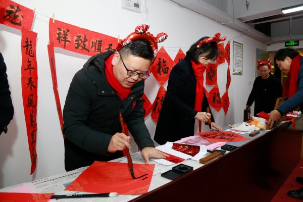 活動現(xiàn)場設(shè)置寫“福”字、寫春聯(lián)活動,員工們積極參與,揮毫潑墨,濃濃的墨香讓“職工之家”活動室的年味兒更加濃郁。