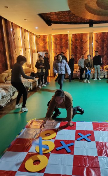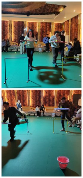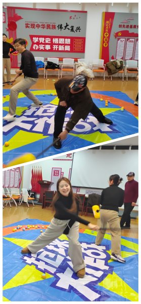 本次活動(dòng)項(xiàng)目有搶球大作戰(zhàn)、四平八穩(wěn)和歡樂(lè)五子棋,三項(xiàng)活動(dòng)均以團(tuán)隊(duì)協(xié)作為主。一開始,大家都聚集在搶球大作戰(zhàn)的場(chǎng)地,找人一起搭檔玩,這個(gè)游戲分為兩組隊(duì)伍(搶球方和防守方),搶球方3名代表參加,防守方2名代表參加作戰(zhàn)。搶球方在搶球的過(guò)程中被防守方用氣錘擊中,搶到的球被視為無(wú)效。游戲開始,搶球的三個(gè)人配合默契,其中兩人負(fù)責(zé)去吸引火力,另一人拼命搶球。一輪結(jié)束后,換搶球方的2人防守,防守方的3人來(lái)?yè)屒?,最終,搶到球最多的隊(duì)伍獲勝。