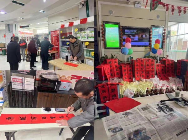 中衛(wèi)郵政工會(huì)組織縣(區(qū))分公司網(wǎng)點(diǎn)積極邀約書法大師到網(wǎng)點(diǎn)手寫對(duì)聯(lián),并邀約周邊商戶、存款客戶等到現(xiàn)場(chǎng)參加活動(dòng)。網(wǎng)點(diǎn)人員并利用下班時(shí)間走訪商戶,送去對(duì)聯(lián)和祝福。