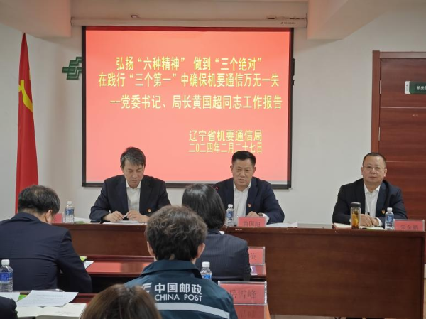 2月27日,遼寧省機(jī)要通信局召開(kāi)2024年工作會(huì)議暨第四屆第二次全體職工會(huì)員大會(huì),審議通過(guò)局黨委書記、局長(zhǎng)黃國(guó)超題為“弘揚(yáng)‘六種精神’、 做到‘三個(gè)絕對(duì)’在踐行‘三個(gè)第一’中確保機(jī)要通信萬(wàn)無(wú)一失”的工作報(bào)告,全面總結(jié)分析了2023年全省機(jī)要通信所做的主要工作及取得的成績(jī),并客觀地指出存在的不足。同時(shí),圍繞省分公司工作會(huì)議精神和“遼郵自強(qiáng)”三年行動(dòng)方案對(duì)2024年的重點(diǎn)工作進(jìn)行了詳細(xì)部署。