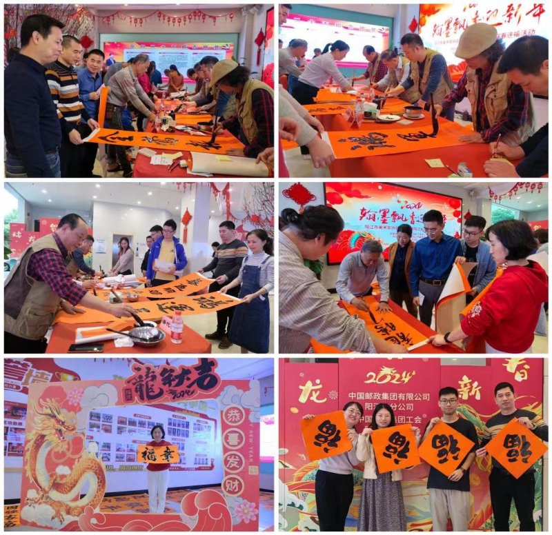 書(shū)寫(xiě)春聯(lián)送祝福,歡歡喜喜迎龍年。為傳承中華民族的傳統(tǒng)文化藝術(shù),推動(dòng)企業(yè)文化建設(shè),營(yíng)造歡樂(lè)祥和的春節(jié)氛圍,使員工們度過(guò)一個(gè)幸福的節(jié)日,1月份以來(lái),陽(yáng)江市郵政工會(huì)積極組織開(kāi)展“翰墨飄香迎新年”2024年送福送春聯(lián)活動(dòng),并在各縣區(qū)、網(wǎng)點(diǎn)聯(lián)動(dòng)開(kāi)展“揮春送?!被顒?dòng),讓員工及客戶感受到郵政企業(yè)濃濃的節(jié)日氛圍。