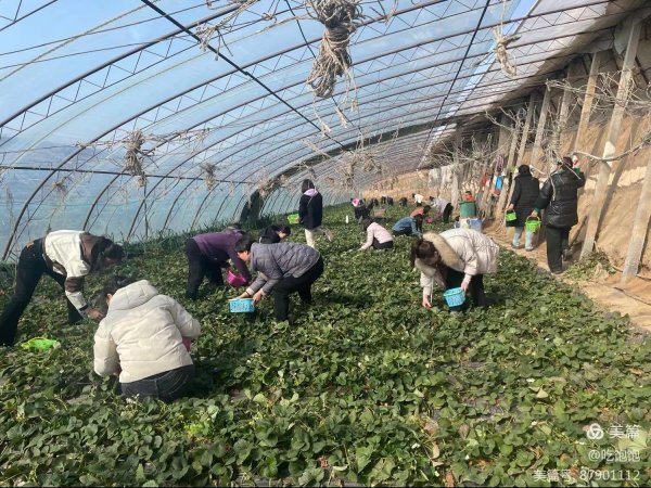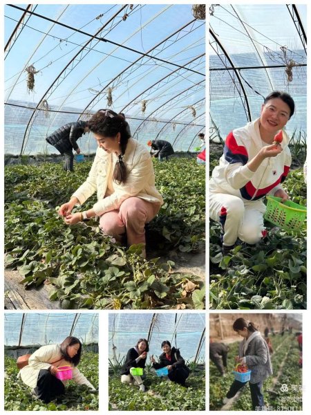 在草莓大棚里,眼前的景色紅綠交映,草莓的味道濃郁極了!女員工們?nèi)砍磷碓诓葺畧@里舒展姿體,放松心情。呈現(xiàn)出一片歡聲笑語的和諧畫面。