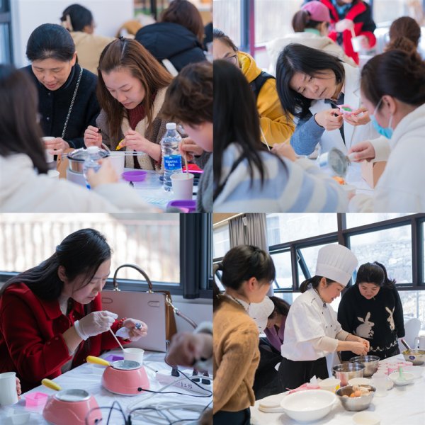 在手工制作環(huán)節(jié)中,本次內(nèi)容分為蛋糕DIY和香皂DIY?;顒蝇F(xiàn)場,老師對蛋糕和香皂的制作進行耐心細致地講解與指導(dǎo),并進行現(xiàn)場教學(xué)示范,大家興致勃勃地拿起制作工具,在各自的蛋糕胚和香皂上展開想象,躍躍欲試。經(jīng)過大家的精心創(chuàng)作,一個個香甜可口的蛋糕、妙趣橫生的香皂陸續(xù)呈現(xiàn)在大家的面前。