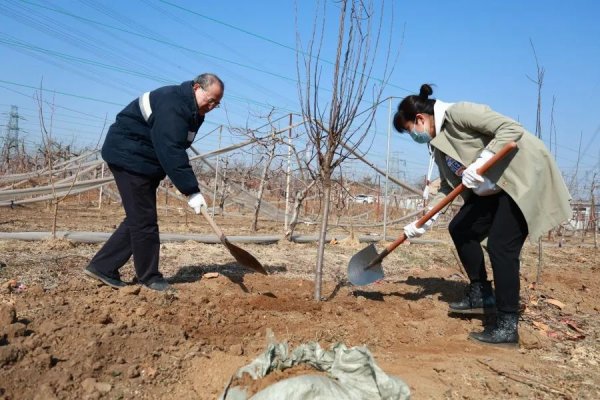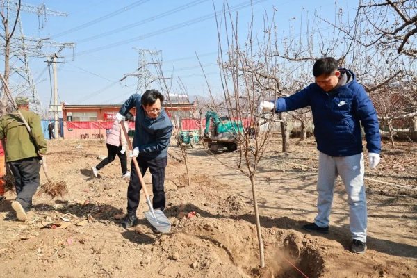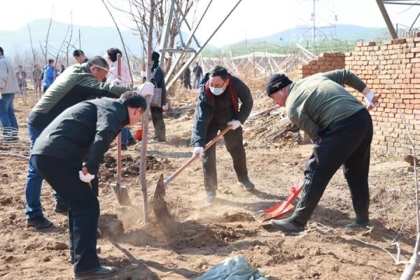 揮鍬鏟土、扶樹培土、圍堰澆水…… 植樹現(xiàn)場,大家3人一組默契配合,共同完成搬運、扶種、填土等環(huán)節(jié),保質(zhì)保量地完成了預(yù)期植樹目標(biāo)。經(jīng)過一番熱火朝天的勞動,一棵棵蘋果樹苗迎風(fēng)佇立,為大地增添綠意生機(jī)。