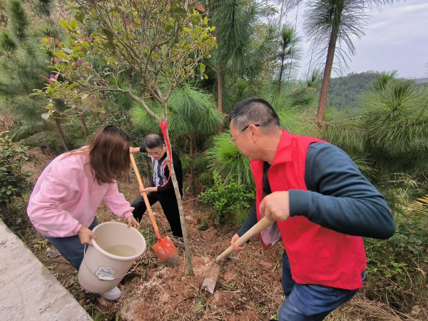 植樹活動現(xiàn)場,大家共同配合,挖坑、栽苗、填土、夯實土壤、澆水,植樹工作有條不紊。一顆顆樹苗在春日的陽光里巍然挺立,綠葉迎風(fēng)招展,煥發(fā)出勃勃生機。