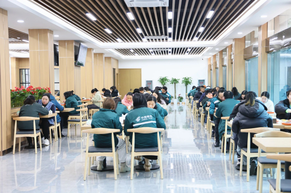 為充分踐行“四去”導(dǎo)向,增強(qiáng)員工的幸福感和獲得感,武漢分公司經(jīng)過(guò)重裝改造的金家墩智慧食堂于3月6日正式投入運(yùn)營(yíng)。走進(jìn)寬敞明亮的用餐大廳,地面光潔如鏡,桌椅擺放整齊,“光盤”“膳食”等健康飲食文化板牌讓人賞心悅目,整體環(huán)境舒適溫馨,食堂單層面積達(dá)987平方米,可容納300人同時(shí)就餐。軟硬件設(shè)施經(jīng)過(guò)全新升級(jí)后,配餐區(qū)和用餐區(qū)分區(qū)運(yùn)作、功能分明,專門配備傳菜電梯,提高配餐效率,還上線自動(dòng)化餐具回收清洗系統(tǒng),更加節(jié)能高效、安全衛(wèi)生。