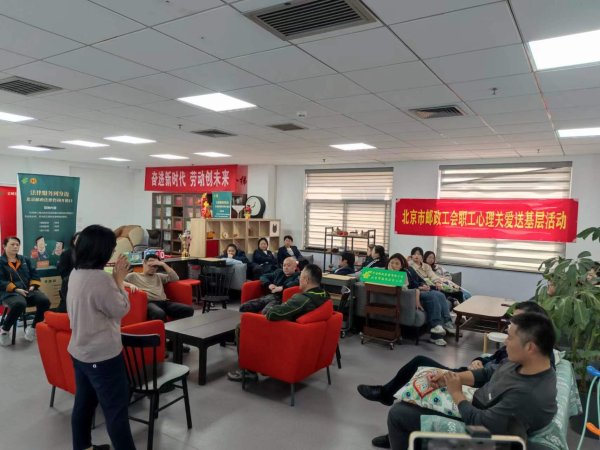 為了幫助廣大職工提升心理健康意識(shí),積極挖掘自身潛能,提升工作幸福感受,海淀區(qū)分公司按照市分公司2024年郵政員工心理健康關(guān)愛(ài)送基層活動(dòng)安排,于4月9日在職工之家承接市總工會(huì)“心理關(guān)愛(ài)勞動(dòng)者,健康工作50年:遇見(jiàn)更好的自己”專(zhuān)題心理團(tuán)體輔導(dǎo)活動(dòng),開(kāi)展了“放松身心,助眠體驗(yàn)”心理團(tuán)體活動(dòng),以促進(jìn)員工身心健康全面發(fā)展,活動(dòng)共30名員工參加。