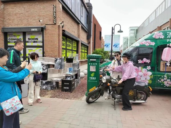 同時,第十四屆北京國際電影節(jié)于2024年4月18日至4月26日舉辦,電影節(jié)九大大板塊之一的“北京市場”落戶于郎園Statio,并設(shè)置專業(yè)區(qū)、大眾區(qū)和集市區(qū)。朝陽區(qū)分公司通過流動郵局的形式入駐服務(wù)“北京市場”,為電影節(jié)提供服務(wù)。利用具有春季特色的流動郵車、個性化明信片打印機、老式郵筒和郵政投遞摩托車等元素,打造了一個獨具特色的“流動郵局”。 這個流動郵局不僅提供了各種電影題材的郵品和文創(chuàng)產(chǎn)品,還展示了中國郵政深厚的文化和歷史底蘊。