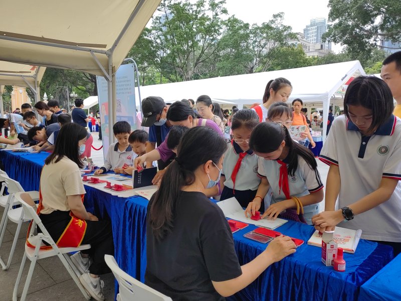 活動(dòng)現(xiàn)場書香氣息濃厚,吸引了眾多市民駐足,特別是學(xué)生和家長們,更是熱情高漲,紛紛前來打卡、合影,感受著郵政文化的魅力。其中,小郵紅領(lǐng)巾特色章作為活動(dòng)的獨(dú)特亮點(diǎn),深受市民喜愛。