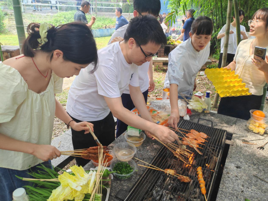 臨近中午,空氣中彌漫起誘人的燒烤香氣,全體職工圍爐而坐,共同參與到這場別具特色的“燒烤派對”中。大家分工合作,有人負責烤制,有人負責調(diào)配醬料,有人負責傳遞食材,一片繁忙而有序的景象??炯苌系娜獯⑹卟嗽谔炕鸬闹丝鞠伦套套黜懀銡馑囊?,引人垂涎。大家在忙碌之余,暢談工作生活,分享歡樂故事,美食與歡笑交織,不僅滿足了味蕾,更滋養(yǎng)了團隊之間的情誼。