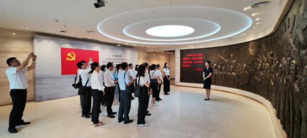 活動(dòng)中,員工們依次參觀了中共三大會(huì)址遺址廣場(chǎng)、中共三大歷史陳列館、中共中央機(jī)關(guān)舊址(春園)。在遺址廣場(chǎng)中間的大理石墻上,“中國(guó)共產(chǎn)黨第三次全國(guó)代表大會(huì)會(huì)址”和“全中國(guó)國(guó)民革命者聯(lián)合起來(lái)”兩行大字簡(jiǎn)約莊重,在講解員的帶領(lǐng)下,員工們依次于“上下求索”“凝聚共識(shí)”“風(fēng)起云涌”“理想之光”四個(gè)展區(qū)觀摩學(xué)習(xí)。