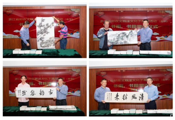 5月9日上午,參加送文化下基層活動(dòng)成員在金華市分公司集中,并在金華市分公司舉辦了書畫、書籍贈(zèng)送儀式。該分公司副總經(jīng)理、工會(huì)主席葛敏代表金華市郵政工會(huì)接受了此次文聯(lián)會(huì)員帶去的書籍、書畫等作品的贈(zèng)送,并介紹了金華市分公司近幾年來取得的經(jīng)營發(fā)展成果。會(huì)后,大家還參觀了該分公司的職工之家。