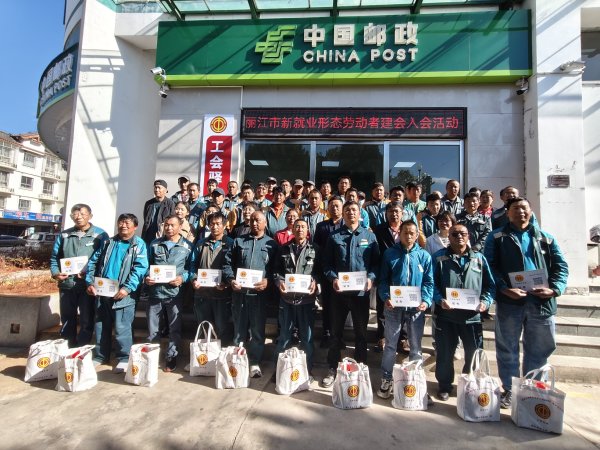 5月14日,麗江郵政新就業(yè)形態(tài)勞動者集中入會儀式在古城區(qū)象山西路郵政營業(yè)所工會驛站舉行,市總工會黨組成員、副主席楊春芳一行、麗江分公司工會主席符凌翔以及51名麗江郵政新就業(yè)形態(tài)會員代表、當(dāng)?shù)孛襟w共同參加活動。集中入會儀式上,市總工會向郵政100名快遞員、貨車司機、網(wǎng)約車司機、外賣員等新就業(yè)形態(tài)勞動者贈送價值1萬余元的入會暖心禮包。