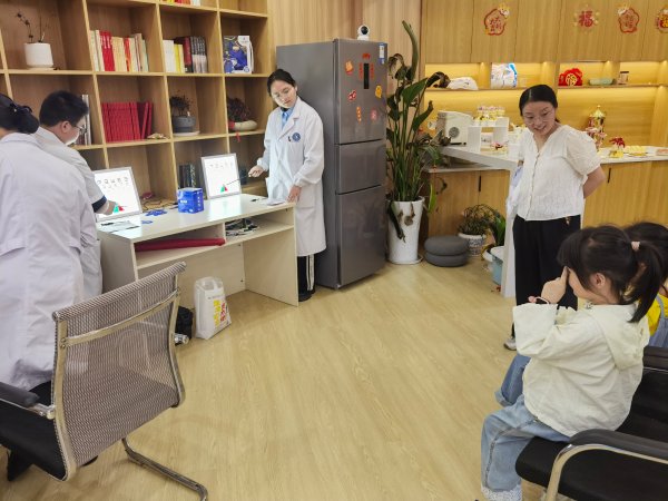 小朋友在醫(yī)生的指導(dǎo)下進(jìn)行視力檢查。家長和小朋友一起動手,組裝眼球模型;現(xiàn)場體驗全息投影等項目。