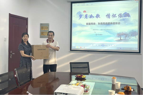 為體現(xiàn)企業(yè)對退休職工的關(guān)愛和敬意,6月3日下午,安徽省國際分公司工會為業(yè)務(wù)骨干田星和奉獻(xiàn)近40年的老郵政人孫勇舉辦了退休座談會。與會人員帶著滿滿的回憶、美好的祝福和深深的期許,歡送兩位同志光榮退休。