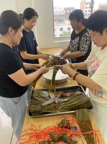 周至分公司工會組織職工在食堂開展“粽葉飄香、濃香端午”包粽子活動。 活動現(xiàn)場,職工圍著提前準備好的糯米、大棗、粽葉,線繩等原材料,紛紛動手參與其中,有教有學,互相交流怎樣包出造型好看的粽子,現(xiàn)場充滿了歡聲笑語,其樂融融,每個人都體驗著參與的樂趣。