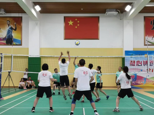 8點30分,舉行開幕式,首先,唱國歌,雄壯豪邁的歌聲在場館回蕩,令人振奮,隨后,副總經(jīng)理、工會主席周靜致開幕辭,市公司黨委書記、總經(jīng)理謝奎宣布比賽開始并開球。比賽采用小組單循環(huán)比賽方式,五人制,其中女隊員2名。參賽隊員訓練有素,配合默契,相互鼓勵,一次次精彩攔網(wǎng),絕殺扣球,巧妙傳球,引起觀眾陣陣叫好。觀眾熱烈的掌聲、啦啦隊高昴的吶喊聲、裁判員響亮的吹哨聲匯成一片。場上氣氛緊張而激烈。
