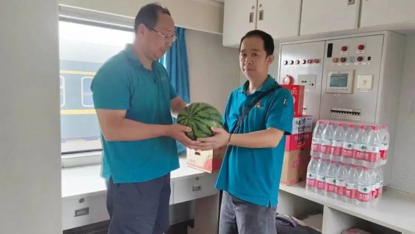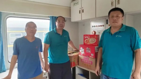 由于本次汛情范圍廣、時間長,火車押運班立刻提高了各郵路作業(yè)風險預判等級,特別加強了人身安全和郵件安全管控,并對防汛工作、特品郵件運輸和押運員生活保障進行了安排部署。 張金棟執(zhí)乘組一行3人,按照路方的安排,隨列車走走停停,最終??吭诹司啾本┱?0公里的北京通州站。該列車編組??吭谕ㄐ熊壍篮笸Kk?,兩側(cè)軌道過路列車不斷。按照路方規(guī)定,執(zhí)乘組不能自行下車到其他站臺或出站,郵政車廂內(nèi)也不能使用驅(qū)蚊用品。火車押運班及時為執(zhí)乘組發(fā)放了“戰(zhàn)備糧”和瓶裝飲用水,還送上西瓜、藿香正氣水等防暑用品。