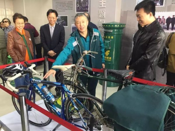 在資料手稿展柜之側(cè),還擺放著一新一老兩輛自行車(chē),也吸引了眾多市民的目光,其中一輛為當(dāng)年投遞員騎行的專(zhuān)用郵車(chē),另一輛則為文化遺產(chǎn)體驗(yàn)者齊欣在大運(yùn)河沿線(xiàn)勘探體驗(yàn)線(xiàn)路使用的珍藏版自行車(chē)。大運(yùn)河文化遺產(chǎn)傳播志愿者 就是利用這樣的交通工具。一點(diǎn)點(diǎn)勘察 “大運(yùn)河文化遺產(chǎn)小道”。(北京郵政工會(huì))