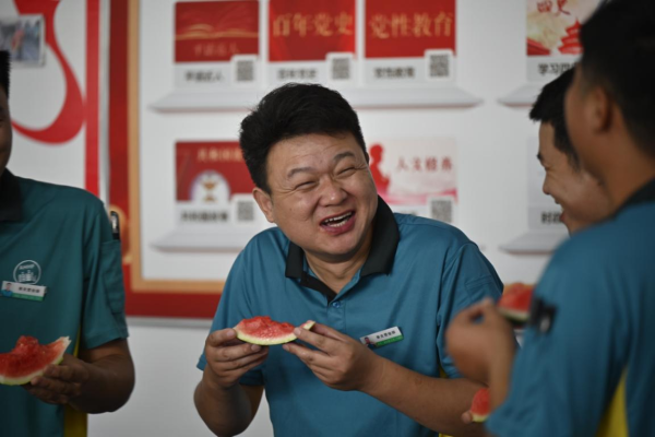 近日,阜陽郵政工會組織開展“夏送清涼”慰問活動,慰問為員工發(fā)放,向不畏炎炎酷暑仍堅守一線崗位上的職工們表示衷心的感謝和誠摯的慰問。 進入夏季以來,阜陽郵政迅速制定防暑降溫工作方案和高溫中暑應(yīng)急預(yù)案,多措并舉為員工送清涼、送關(guān)愛,5千斤西瓜、水、防暑降溫藥品等慰問品送到一線投遞營業(yè)部,為投遞員們送去了一份清爽和關(guān)懷。快遞員紛紛表示,炎炎夏日收到工會送來的西瓜,特別的開心和感動,更有干勁了,會繼續(xù)做好本職工作,傳遞好每一份快遞,全力推動安徽郵政高質(zhì)量發(fā)展、建設(shè)“優(yōu)新強足”皖美郵政做出更大貢獻。