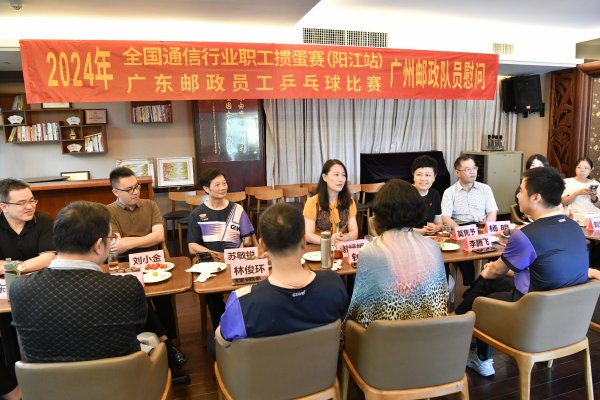 6月27日上午,慰問活動在廣州市分公司青年活動室進(jìn)行。省郵政工會基層工作部副部長謝綠媛,廣州市分公司副總經(jīng)理、工會主席莫雋予,工會副主席楊明出席活動。8名乒乓球參賽員工與4名摜蛋參賽員工依次發(fā)言,暢談參賽感悟。