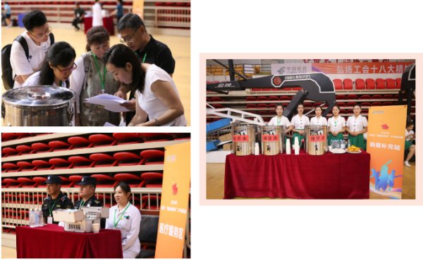 在比賽如火如荼進(jìn)行的同時(shí),郵銀雙方的后勤團(tuán)隊(duì)也在馬不停蹄地提供服務(wù)支撐。一大早,他們提前到達(dá)場地,從場館清潔、人員接送、設(shè)施檢查到醫(yī)療物資和餐飲物品的準(zhǔn)備,事無巨細(xì),各個(gè)成員各司其職,相互配合,為參賽人員創(chuàng)造了良好的比賽環(huán)境。