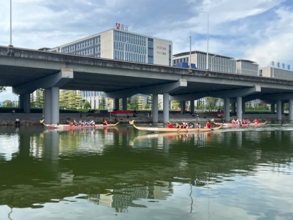 本次活動分成了3支精英小隊,隊員由各部室員工隨機組成,余下的自行組成啦啦隊。熱身過后的各個隊伍紛紛展開了賽前的訓練,在教練講解賽龍舟的三要素“人齊、心齊、動作齊”后,各組隊員按照指導,練習起手、劃槳、轉(zhuǎn)身等動作。伴隨著整齊劃一的口號聲,河道上一場激烈的龍舟賽即將開始。