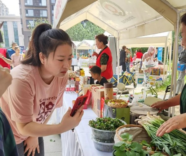 活動現(xiàn)場,人頭攢動,熱鬧非凡。新景家園的居民們紛紛走出家門,來到小廣場,參與這場別開生面的公益活動。廣場上,24家京郊農(nóng)業(yè)企業(yè)提供的各種農(nóng)產(chǎn)品琳瑯滿目,有玫瑰制品、野山茶、京白梨制品、大紅袍花椒、紅頭香椿醬、醬菜、水果番茄、糯玉米、土雞蛋、蜂蜜等特色農(nóng)產(chǎn)品,吸引了眾多市民的目光。豐富的農(nóng)產(chǎn)品不僅品質(zhì)優(yōu)良,而且價格實惠,深受居民們的喜愛。