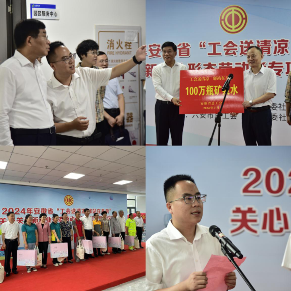7月9日上午,省人大常委會副主任、省總工會主席何樹山一行赴金寨縣寄遞公共配送中心開展“工會送清涼 驛站在身旁”關(guān)心關(guān)愛新就業(yè)形態(tài)勞動者專項活動,并調(diào)研新就業(yè)形態(tài)勞動者工會驛站工作。省委、省總工會;六安市副市長、金寨縣委書記等領(lǐng)導(dǎo);部分新就業(yè)形態(tài)勞動者代表參加。在活動中,金寨縣分公司作為全省工會驛站示范站點先進代表受邀進行了發(fā)言?,F(xiàn)場倡議社會各界共同來關(guān)心關(guān)愛新就業(yè)形態(tài)勞動者和戶外勞動者!