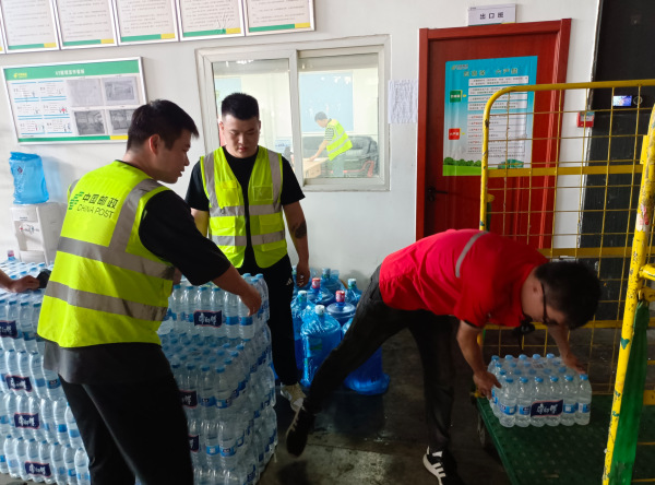 涼水、冰塊、綠豆湯......今日齊上場,下午4點開班前,1600瓶礦泉水和24個大型冰塊陸續(xù)送達(dá)郵件處理場地。為了讓每個網(wǎng)格區(qū)域和生產(chǎn)現(xiàn)場所有人員都能感受到絲絲涼意,該中心同外包公司共同將冰塊和涼水送至各作業(yè)區(qū)域。“生命安全永遠(yuǎn)放在第一,今日現(xiàn)場所有生產(chǎn)人員每人至少5瓶水,我們保證飲用水充足,如果發(fā)現(xiàn)身體不舒服第一時間找網(wǎng)格長,我們還配備防暑降溫藥品?!痹谠撝行某隹谲囬g班前會上,現(xiàn)場工會工作者協(xié)同管理人員還就安全事宜一一強(qiáng)調(diào)。該中心工會組織在日溫度達(dá)到35°及以上時向現(xiàn)場作業(yè)人員發(fā)放綠豆湯。