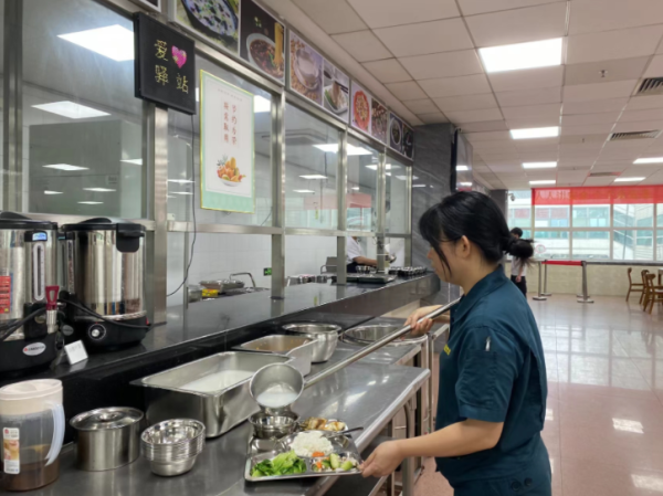 同樣細(xì)心、周到的服務(wù)還體現(xiàn)在自助取用區(qū),員工們可以根據(jù)食量自由選擇“小碗湯”或者“大碗湯”,也可以按需加飯,有效減少了餐飲浪費(fèi)。墻上張貼著的“珍惜糧食,拒絕浪費(fèi)”等系列宣傳畫,無聲卻有力地傳達(dá)著勤儉節(jié)約的美德,成為食堂內(nèi)一道亮麗的文化風(fēng)景線。