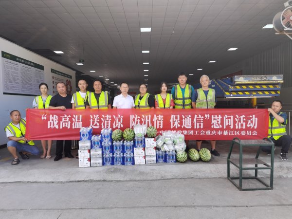 為保障員工的身體健康,綦江郵政工會準備了防暑降溫藥品、礦泉水和西瓜,送到員工手中,現(xiàn)場慰問中,總經(jīng)理江燦詳細了解一線生產(chǎn)情況,并叮囑一定注意職工食堂膳食的調(diào)整,預防腸胃傳染病發(fā)生,適當調(diào)整外勤作業(yè)時間,最大響度減少員工在高溫中造成中暑等情況的發(fā)生,做好夏季酷暑自我保護。