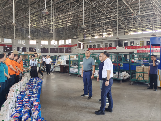 7月25日下午,湖南省總工會二級巡視員易鴻志、省直屬基層工會工作委員會副主任樊偉,在永州市總工會黨組書記、副主席樂家茂的陪同下來到永州市郵件處理中心,看望了在酷熱中辛勤工作的郵政員工,并為“快遞小哥”和郵運(yùn)司機(jī)等外勤人員送上了慰問品和工會組織的關(guān)愛。