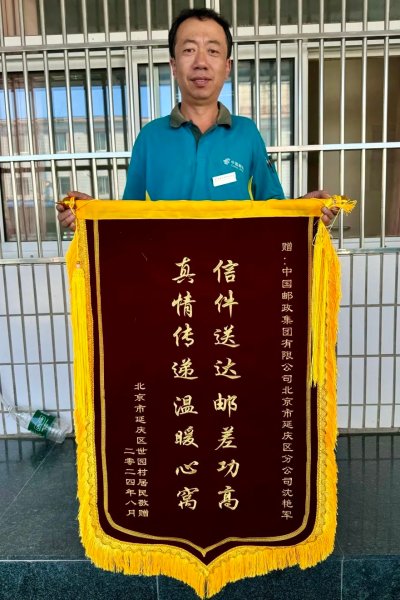 “信件送達(dá)郵差功高,真情傳遞溫暖心窩” —— 這面錦旗上的字字句句,不僅是老人對沈艷軍個(gè)人的感激之情,更是對北京延慶郵政優(yōu)質(zhì)服務(wù)的高度認(rèn)可。老人的聲音略顯顫抖,卻充滿了真摯:“小沈服務(wù)態(tài)度好,對工作認(rèn)真負(fù)責(zé),對人又熱心。他是我心中的活雷鋒,用實(shí)際行動(dòng)詮釋了‘人民郵政為人民’的真諦?!?/p>
