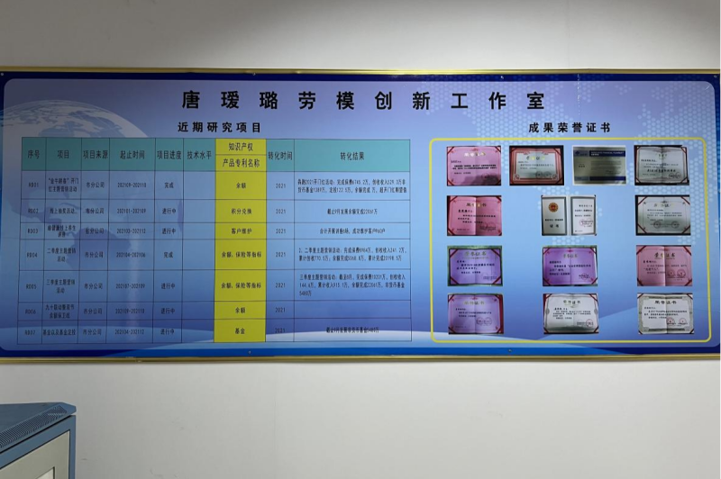 “唐璦璐勞模創(chuàng)新工作室”成立后,已經(jīng)成為一個(gè)銳意創(chuàng)新、攻堅(jiān)克難的陣地。該工作室把開展管理創(chuàng)新、方法創(chuàng)新、服務(wù)創(chuàng)新和業(yè)務(wù)創(chuàng)新作為主要任務(wù),將先進(jìn)的管理經(jīng)驗(yàn)、方法和成果轉(zhuǎn)化為具體實(shí)踐,有效提升了相關(guān)業(yè)務(wù)水平。
