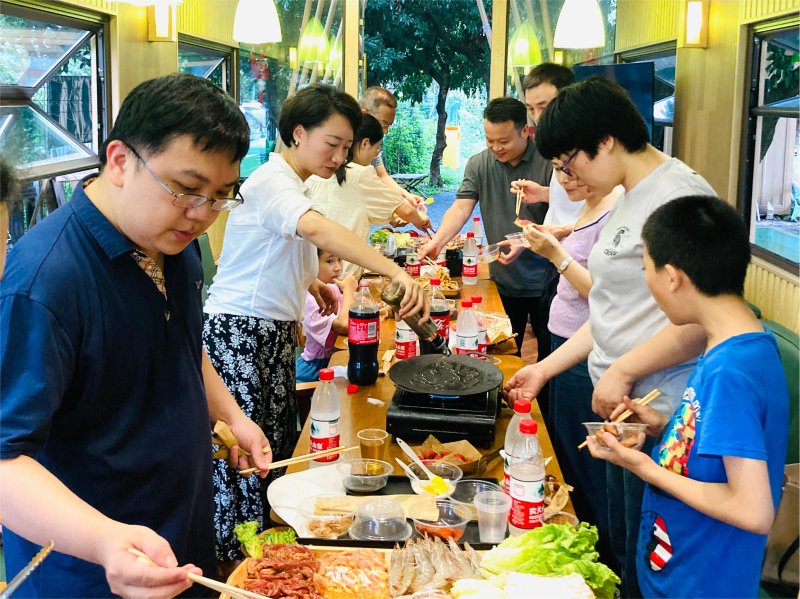 隨后工會(huì)精心安排的燒烤盛宴,將大家拉回了“人間煙火”的生活中,牛肉、大蝦、雞翅、烤腸等美食逐一上桌,香氣四溢,員工們圍爐而坐,盡情享受著自助燒烤的樂趣,歡聲笑語與裊裊炊煙交織在一起,營造出溫馨而歡樂的氛圍。