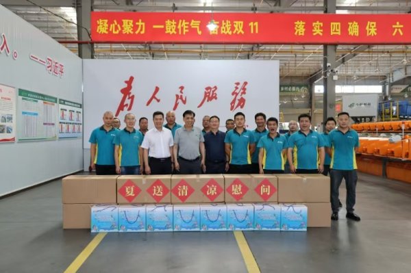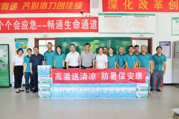 工會送清涼,防暑保安康。2024年8月5日上午,烈日炎炎,湖北省分公司紀委書記吳建華等領導來到孝感郵政網路運營中心進行高溫慰問,吳書記一到中心詳細詢問了分揀運輸作業(yè)生產情況,中心向吳書記重點匯報了在高溫天氣下采取的防暑降溫措施以及錯峰作業(yè)情況,他親切對現場員工說:“高溫期間進出口作業(yè)工作強度大,體力消耗大,我代表省分公司對各位同志表示親切的慰問,希望大家在高溫期間注意身體,一如既往做好快遞進村運輸、出口集包、夠量直發(fā)等工作”。同時吳書記強調一定要做好無著郵件的保管、登記、處理工作,