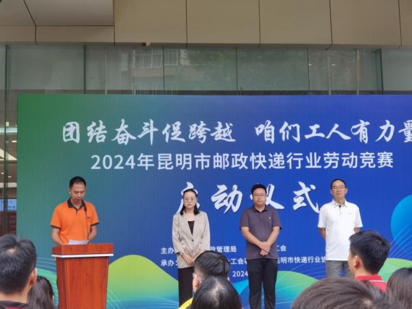 8月7日,由昆明市總工會(huì)、昆明市快遞行業(yè)工會(huì)聯(lián)合會(huì)舉辦的“團(tuán)結(jié)奮斗促跨越 咱們工人有力量”2024年昆明市快遞行業(yè)勞動(dòng)競(jìng)賽啟動(dòng)儀式在昆明舉行,昆明市9家快遞企業(yè)參加,昆明郵政組織全市快遞員參加此次勞動(dòng)競(jìng)賽。