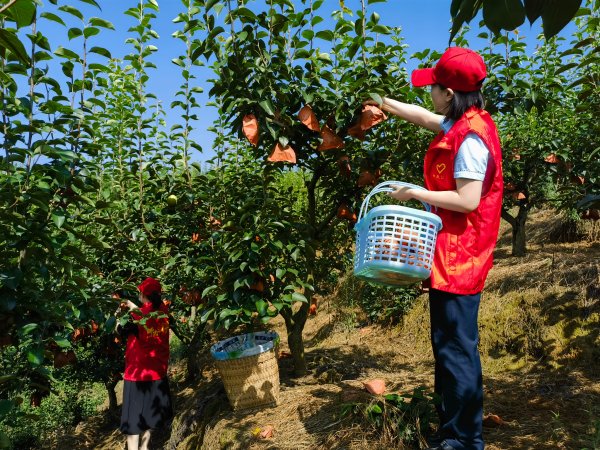 果園內(nèi),一個個碩大的梨子掛滿枝頭,果香四溢。志愿者們擼起袖子穿梭在梨園內(nèi),小心翼翼地將一個個梨子摘下,裝入筐中。大家采摘、選果、封箱、裝車,干得熱火朝天、不亦樂乎。雖滿頭大汗,但員工們紛紛表示,多干一會,幫種植戶多摘幾筐,就算辛苦一點也值得。