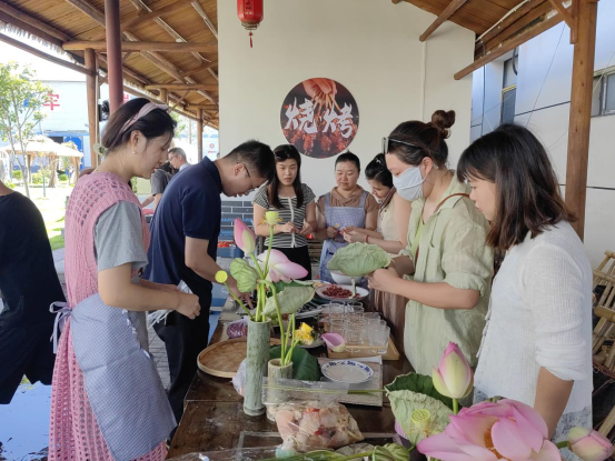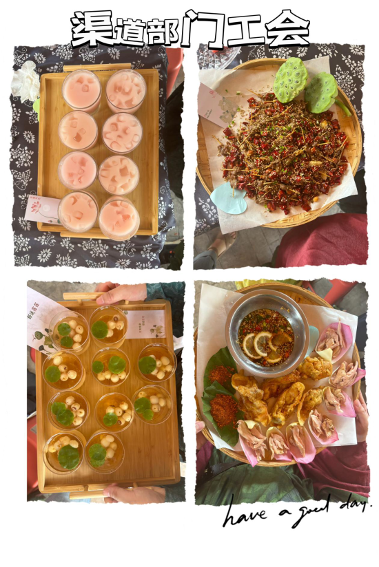 緊接著,二十余道美味相繼出鍋,令人目不暇接。一道道色香味俱全的佳肴被相繼端上評委席,“嘗”委們品菜、點(diǎn)評、打分,好不熱鬧。其中,渠道部門工會(huì)的“‘荷’你在一起”、牙簽牛肉奪得頭名,其上菜過程更是令人耳目一新?!吧喜藛T”們身著漢服,用精致的擺盤、另類的解說和豐富的口味徹底“征服”了“嘗”委們。另外,婁星區(qū)分公司烹制的“夏日清蓮”“‘肘’遍天下”摘得第二名;漣源分公司的“‘井’上添花”、啤酒鴨奪得第三名。