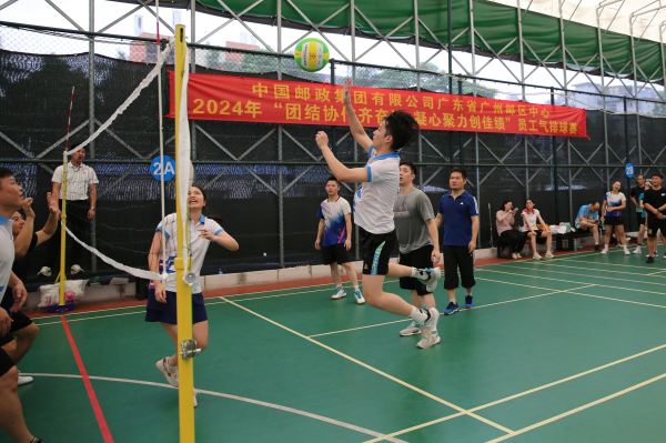 8月15日上午,盡管夏日炎炎,熱浪滾滾,但酷熱并未能阻擋廣州郵區(qū)中心員工的熱情與活力。賽場上,身著不同顏色隊(duì)服的參賽選手們斗志昂揚(yáng)、奮力拼搏。每一次精準(zhǔn)的傳球,每一次有力的扣殺,每一次默契的配合,都引得在場觀眾熱烈喝彩。整個(gè)賽場人聲鼎沸,歡呼聲、助威聲、吶喊聲,此起彼伏。