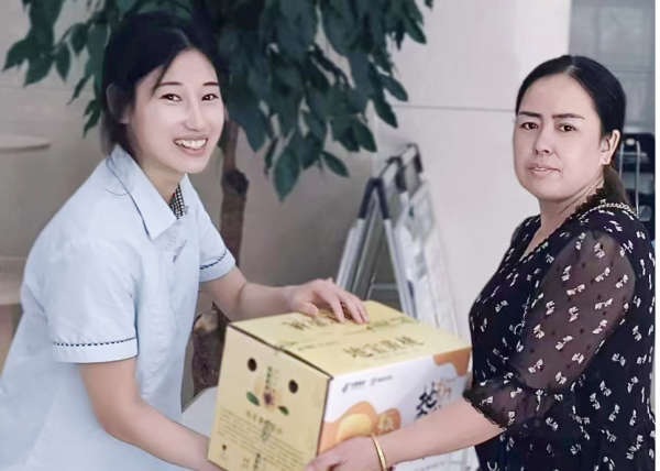 2023年夏天,為將40件維護(hù)客戶的水果趕在當(dāng)天送到商戶手中,身材嬌小的王艮艮頂著火辣辣的太陽,一個(gè)人從中午搬到晚上8點(diǎn)。同事開玩笑說她:水果送到了,人也“餿”掉了。她卻借著機(jī)會(huì)交上了朋友,拿下一個(gè)個(gè)商貿(mào)客戶。