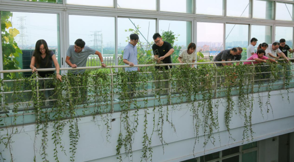 隨著時(shí)間的推移,一株株嫩綠的“光耀滕”在員工們的精心呵護(hù)下茁壯成長(zhǎng)。它們逐漸伸展出茂密的枝葉,綻放出絢爛的花朵,仿佛是為迎接雙節(jié)同慶而特別準(zhǔn)備的祝福。此外,這些“光耀滕”不僅美化了職工小家的環(huán)境,還為員工們提供了一個(gè)放松心情、享受自然的綠色空間。忙碌之余,員工們都會(huì)不由自主地走到窗前,欣賞這些生機(jī)勃勃的綠色植物,感受它們帶來的清新與寧?kù)o。