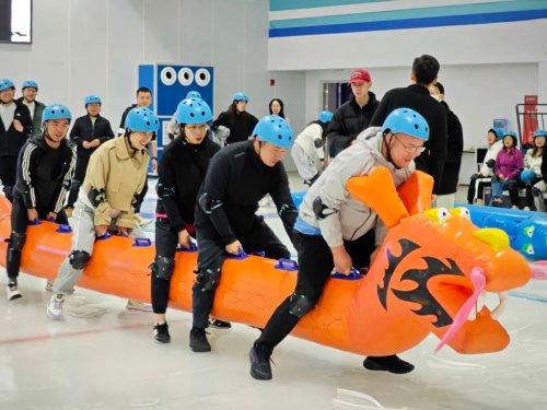 冰壺比賽結(jié)束后,冰上推海豚和冰上龍舟這兩項趣味橫生的活動也相繼登場,為大家?guī)砹烁嗟臍g笑與驚喜,將運動會推向了高潮。這兩項活動不僅增添了運動會的趣味性,更讓員工們在歡聲笑語中感受到了團隊合作的力量與樂趣。