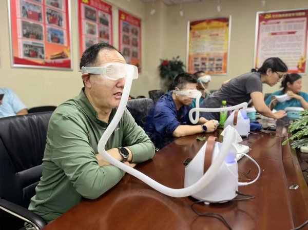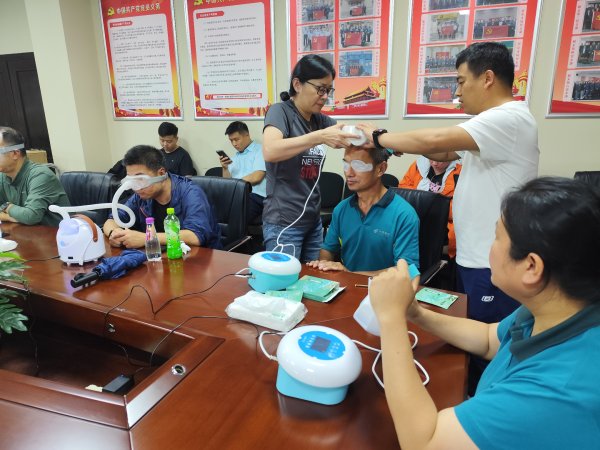 工會(huì)特邀國(guó)家級(jí)驗(yàn)光員技師王彥君為來(lái)自一線近50名職工講解了眼病的形成原因和如何用眼護(hù)眼。隨后,大家體驗(yàn)了通過(guò)霧化儀給眼喝水,熱灸儀給眼供血,葉黃素眼貼給眼吃飯三個(gè)步驟,達(dá)到給眼睛釋放壓力,緩解疲勞的作用。