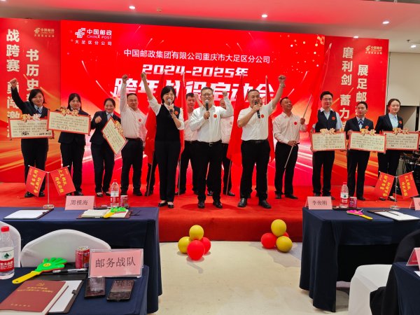 活動(dòng)當(dāng)天,大足郵政員工們精神抖擻,熱情洋溢,10個(gè)戰(zhàn)隊(duì)都充滿了斗志和活力。隨著活動(dòng)的深入,授戰(zhàn)旗、呼口號(hào)、立軍令狀等環(huán)節(jié)逐一展開,現(xiàn)場氣氛熱烈而莊重。每個(gè)戰(zhàn)隊(duì)都高舉著自己的戰(zhàn)旗,口號(hào)聲震耳欲聾,仿佛已經(jīng)看到了勝利的曙光。