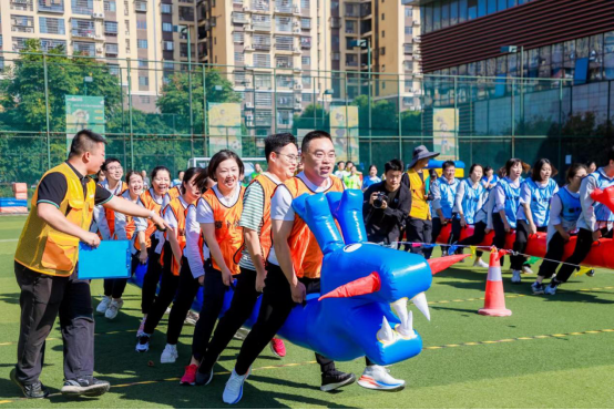 本次嘉年華運(yùn)動(dòng)會(huì)由16支參賽隊(duì)伍250余名運(yùn)動(dòng)員參加,共設(shè)置了8個(gè)項(xiàng)目,分別是財(cái)源滾滾、巨無霸投籃、飛龍?zhí)毓ぁ⒌滤囯p馨、枕頭大戰(zhàn)、環(huán)游世界、動(dòng)感五環(huán)、零食大作戰(zhàn)。每一個(gè)項(xiàng)目既是智慧和體力的角逐,更是團(tuán)隊(duì)協(xié)作的完美比拼。比賽前,參賽選手們?nèi)褙炞⒙犞门袉T對(duì)每個(gè)項(xiàng)目及得分技巧的講解,個(gè)個(gè)摩拳擦掌,躍躍欲試。隨著一聲令下,比賽開始了,參賽隊(duì)員們?nèi)σ愿啊⑾嗷ヅ浜?、奮勇爭(zhēng)先。財(cái)源滾滾項(xiàng)目中,每隊(duì)10人進(jìn)行比拼,隊(duì)員通過協(xié)作配合使比賽器材在跑道上滾動(dòng)前進(jìn),在隊(duì)員們的默契配合下以及啦啦隊(duì)的歡呼聲中,各個(gè)隊(duì)伍順利到達(dá)了終點(diǎn)。整場(chǎng)比賽,參賽選手們?cè)獨(dú)鉂M滿、團(tuán)結(jié)一致、配合默契,展現(xiàn)了長(zhǎng)沙郵政廣大干部職工們積極向上、團(tuán)結(jié)協(xié)作的精神風(fēng)貌。