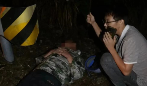 10月1日晚上19時許,天空下著雨,貴溪市冷水鎮(zhèn)520鄉(xiāng)道上來往的車輛并不多。江西省鷹潭市分公司寄遞事業(yè)部員工周純開車途經(jīng)該處時,突然看見一輛摩托車失控倒在路上,隱約看見一個身影也倒在路邊。他隨即意識到可能有人遭遇車禍,二話不說立即下車,迅速查看現(xiàn)場。果然,看見一名村民仰倒在路面護(hù)欄邊,滿臉鮮血沒有動靜。