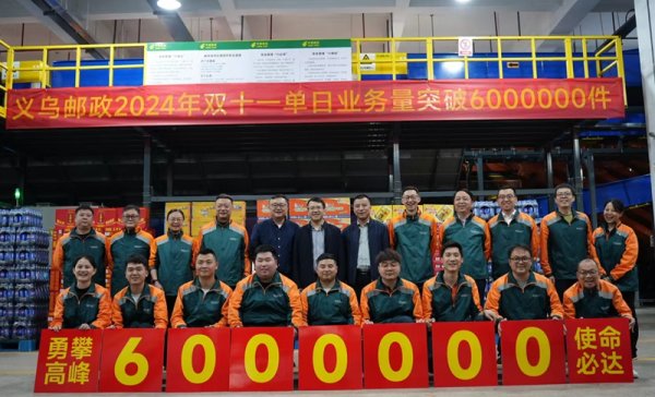 截至11月11日22:38,義烏市分公司單日業(yè)務量首次突破600萬件,實現了高起點上的新跨越。浙江省省分公司副總經理李崇喜攜省郵政工會副主席尤慶華專程到義烏四海處理中心現場祝賀,并看望慰問奮戰(zhàn)在旺季生產一線的郵政員工,送上貼心、實用的慰問品,鼓舞士氣,助力寄遞業(yè)務快速發(fā)展。